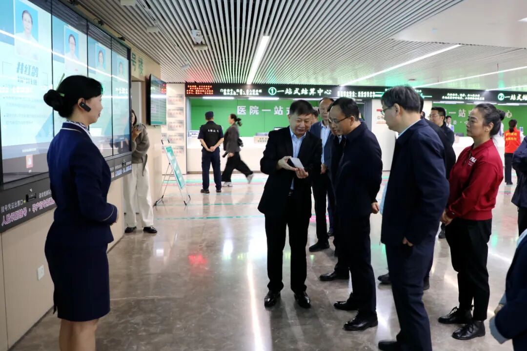 市人大趙耀嵩副主任一行首先聽取了市二院黨委書記魏松的工作匯報。魏松書記結(jié)合PPT內(nèi)容,圖文并茂介紹了醫(yī)院在優(yōu)化服務(wù)流程、檢驗結(jié)果互認(rèn)、方便群眾就醫(yī)、醫(yī)?;鸨O(jiān)管、投訴端關(guān)口前移等方面的主要做法,表示醫(yī)院自開展集中整治活動開展以來,通過一系列舉措,實現(xiàn)了患者就醫(yī)多項業(yè)務(wù)“一次到位”,價格公開、服務(wù)可查、投訴可追,醫(yī)院就診人次明顯上升,患者醫(yī)療費用、群眾投訴顯著下降,群眾滿意度大幅提升。同時,市人大視察組一行實地觀摩了病人一站式服務(wù)中心、醫(yī)保一站式結(jié)算中心和人臉識別掛號系統(tǒng)。隨后,視察組一行來到二樓內(nèi)科門診,現(xiàn)場觀看了患者檢驗結(jié)果互認(rèn)的操作流程。