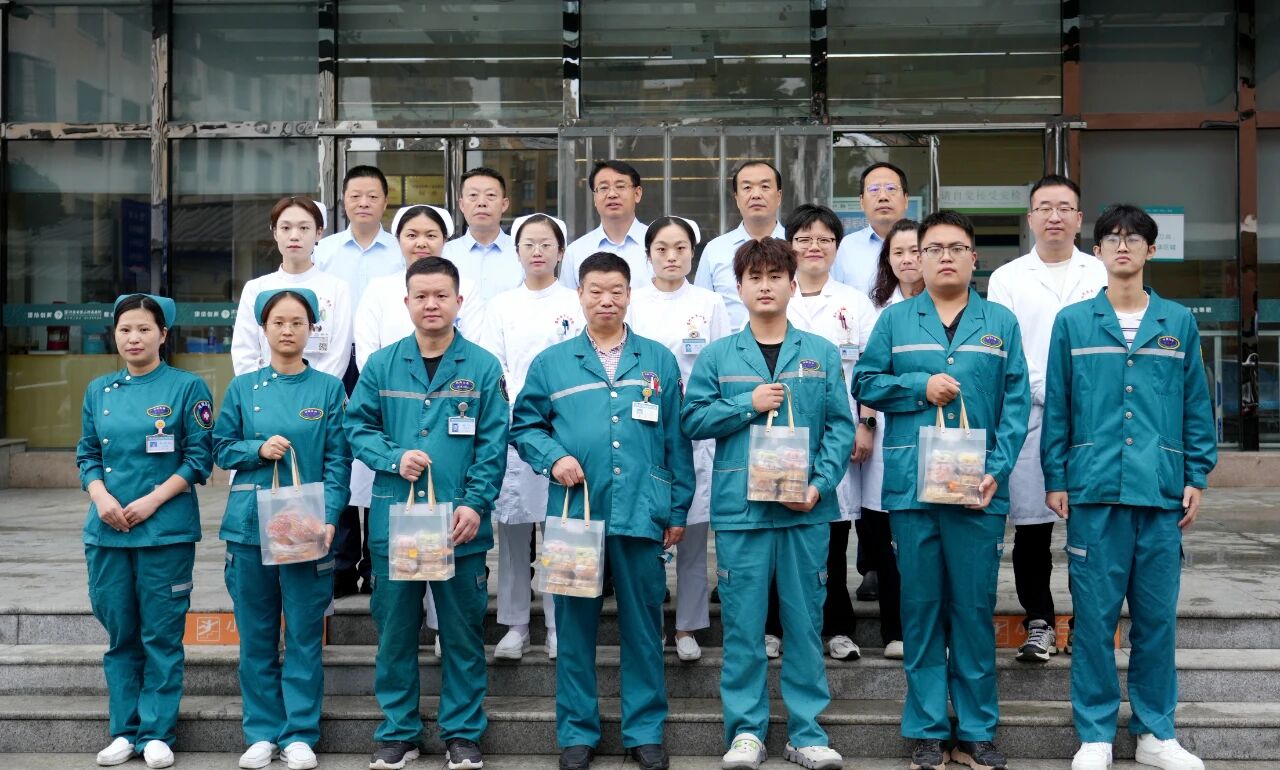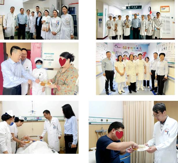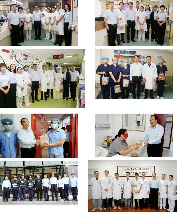 所到之處,暖意濃濃。每到一處,院領(lǐng)導(dǎo)都與大家親切交談,將承載著關(guān)心和祝福的慰問品送到大家手中,詳細詢問假期排班情況、保障措施落實情況,對大家堅守崗位、無私奉獻的精神給予高度贊揚,對職工家屬們的理解和支持表示感謝。同時,叮囑大家在全力保障醫(yī)療工作的同時,要注意休息。在病房里,院領(lǐng)導(dǎo)將精心準備的月餅送到住院患者及家屬手中,詳細詢問他們的恢復(fù)情況,并為他們送上節(jié)日的祝福。