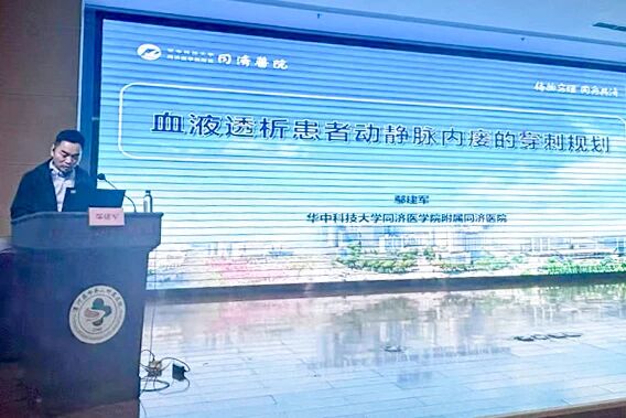 會議特邀湖北省護理學會血液凈化護理專業(yè)委員會主任委員,華中科技大學同濟醫(yī)院血液凈化室護士長鄢建軍圍繞《血液透析患者動靜脈內(nèi)瘺的穿刺規(guī)劃》,系統(tǒng)闡述了如何從血管評估、穿刺點選擇、到長期穿刺方案的制定,通過科學的規(guī)劃最大限度地保護血管,為延長患者“生命線”的壽命奠定了堅實基礎(chǔ)。由漯河市中心醫(yī)院血液凈化室護士長周瑾與郾城區(qū)人民醫(yī)院血液凈化室護士長張娟主持會議。