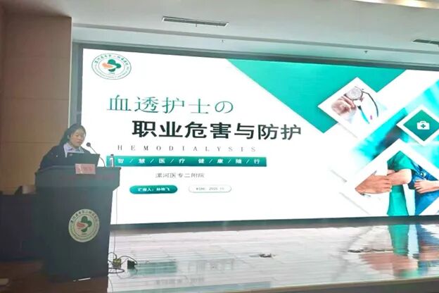 漯河醫(yī)專二附院血液凈化室骨干孫艷飛圍繞《血透護士的職業(yè)危害與防護》展開講解,從各個層面系統(tǒng)梳理了血透護士面臨的職業(yè)風險,并提出了具體、可行的防護措施與建議,呼吁在全力關(guān)愛患者的同時,務(wù)必重視自身的職業(yè)安全與身心健康,體現(xiàn)了深刻的人文關(guān)懷精神和團隊管理智慧。由臨潁縣中醫(yī)院血液凈化室護士長陳莉與舞陽縣中醫(yī)院血液凈化室護士長張銳主持會議。