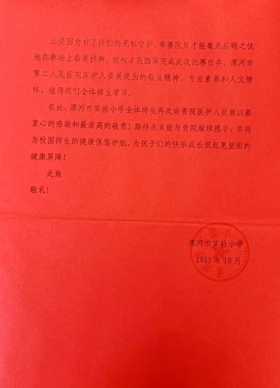 市紅十字會、市實驗小學贈送錦旗感謝信致謝漯河市二院