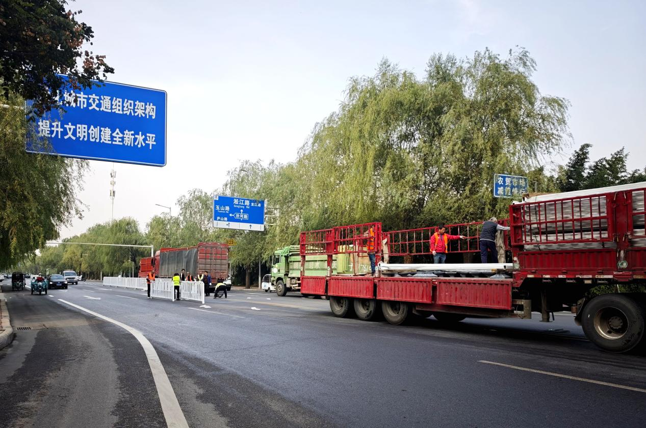 四天“速成”!漯河?xùn)|山路中央分隔帶護(hù)欄工程為安全環(huán)?!凹哟a”