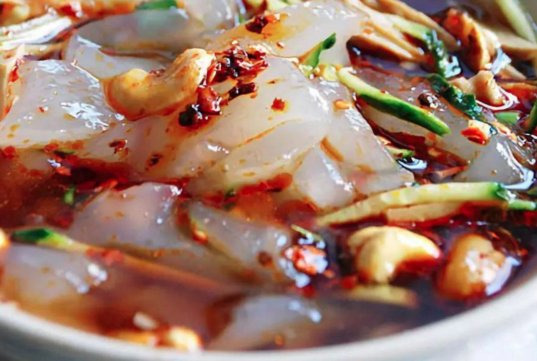 新天地小吃街炒涼粉。如果你想感受夜市的熱鬧與煙火氣,新天地小吃街的炒涼粉攤位不容錯(cuò)過。涼粉現(xiàn)炒現(xiàn)賣,在鐵板上滋滋作響,淋上香濃的芝麻醬后,口感變得更加糯滑溫潤(rùn),被食客們戲稱為“人間天堂”。它家的特色在于用醬豆調(diào)味替代了常見的豆瓣醬,風(fēng)味別具一格。