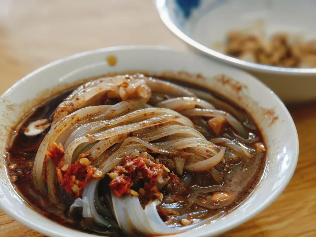 漯河涼粉的特色在于其獨(dú)特的工藝與風(fēng)味。不少家庭作坊至今仍堅(jiān)持古法:用石磨細(xì)細(xì)研磨新鮮豌豆,經(jīng)過浸泡、磨漿、沉淀、熬煮等多道工序,這樣做出的涼粉格外筋道爽滑。調(diào)味上,漯河人也頗有心得,融合南北特色,常加入本地特有的藿香葉、荊芥等香草,調(diào)出酸辣爽口的“沙澧風(fēng)味”,與開封炒涼粉、靈寶一生涼粉等河南其他地方的涼粉風(fēng)味區(qū)別開來,成為胡辣湯、燴面之外漯河飲食文化中不可或缺的一環(huán)。