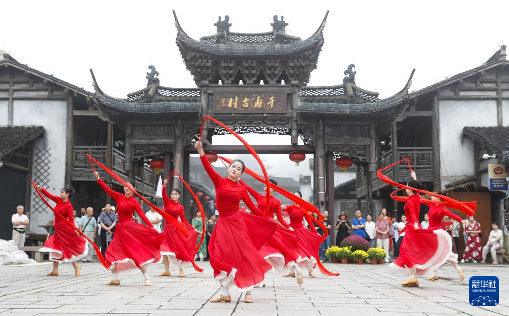 9月27日,演員在江蘇省句容市寶華山國家森林公園內(nèi)的千華古村為游客表演節(jié)目。